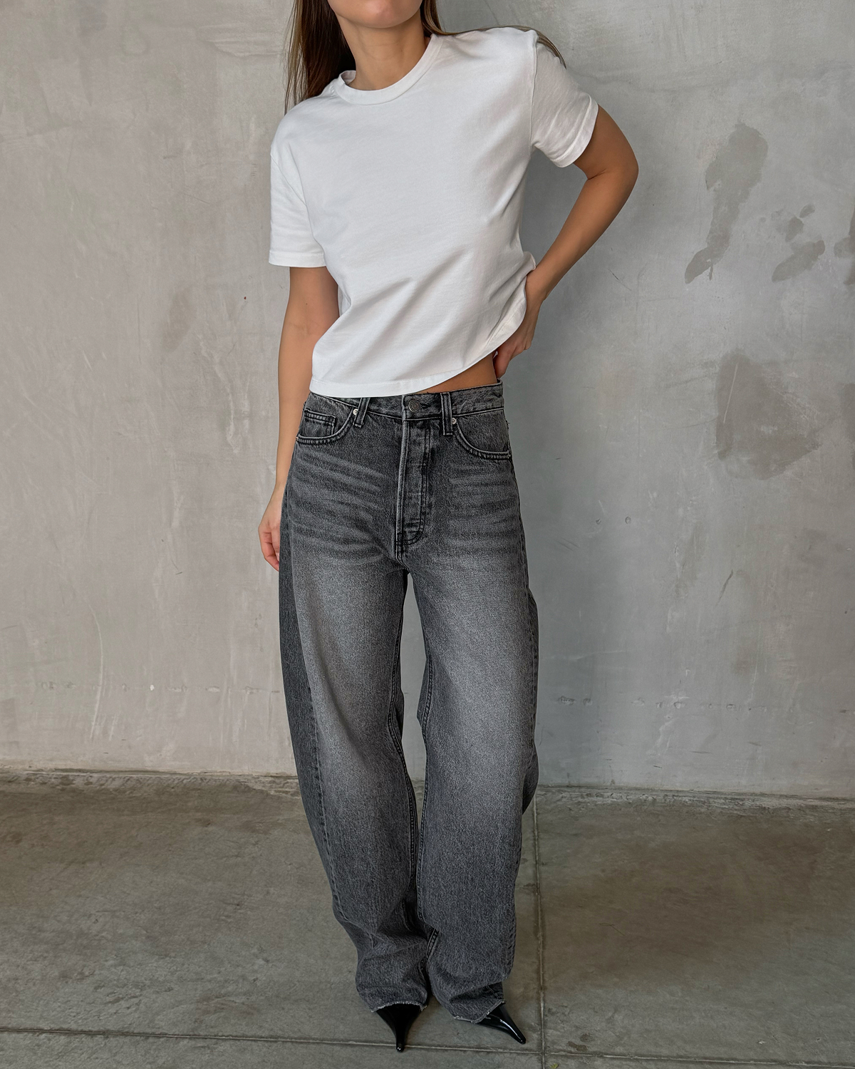 Выбор кроя — это не только вопрос моды, но и вопрос пропорций. Например, более узкие модели подчеркивают силуэт, тогда как свободные создают ощущение расслабленности и непринужденности. Slim fit визуально вытягивает ноги и уравновешивает массивный верх, а relaxed fit добавляет объёма и смягчает резкие линии, что особенно уместно в контексте минималистичных или оверсайз-образов. Важно также учитывать, как ткань драпируется: плотный деним в свободном крое может смотреться излишне жёстко, тогда как эластичный вариант в той же посадке будет мягко облегать, создавая эффект второй кожи.