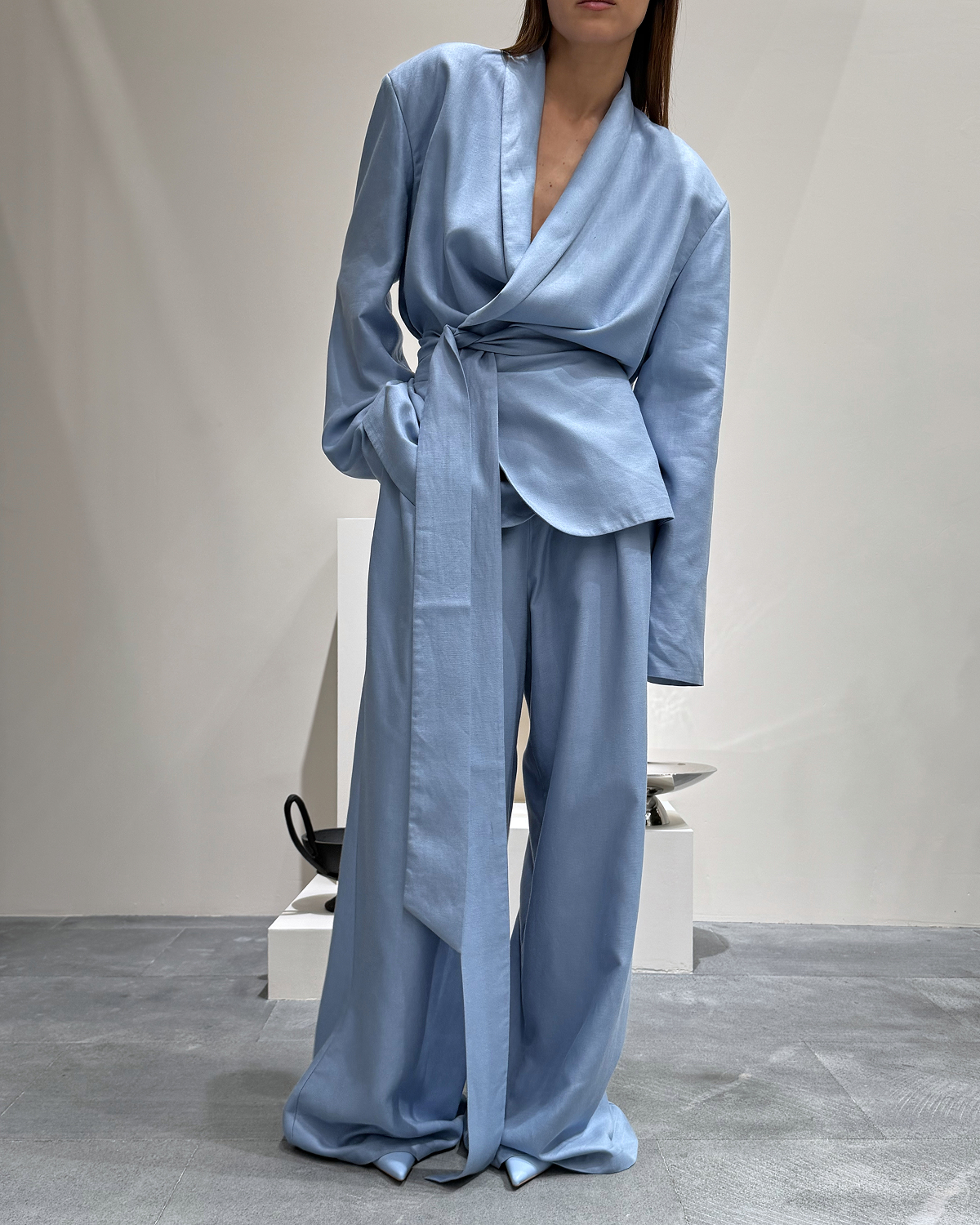 Интересно, что голубой в 2026 году становится не только летним, но и всесезонным цветом. Его всё чаще можно увидеть в осенне-зимних коллекциях в сочетании с плотными тканями: шерстью, кашемиром, плотным хлопком. Это расширяет возможности использования оттенка и делает его по-настоящему универсальным инструментом стилиста.