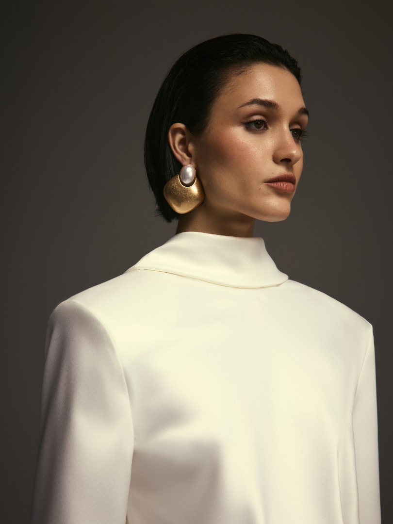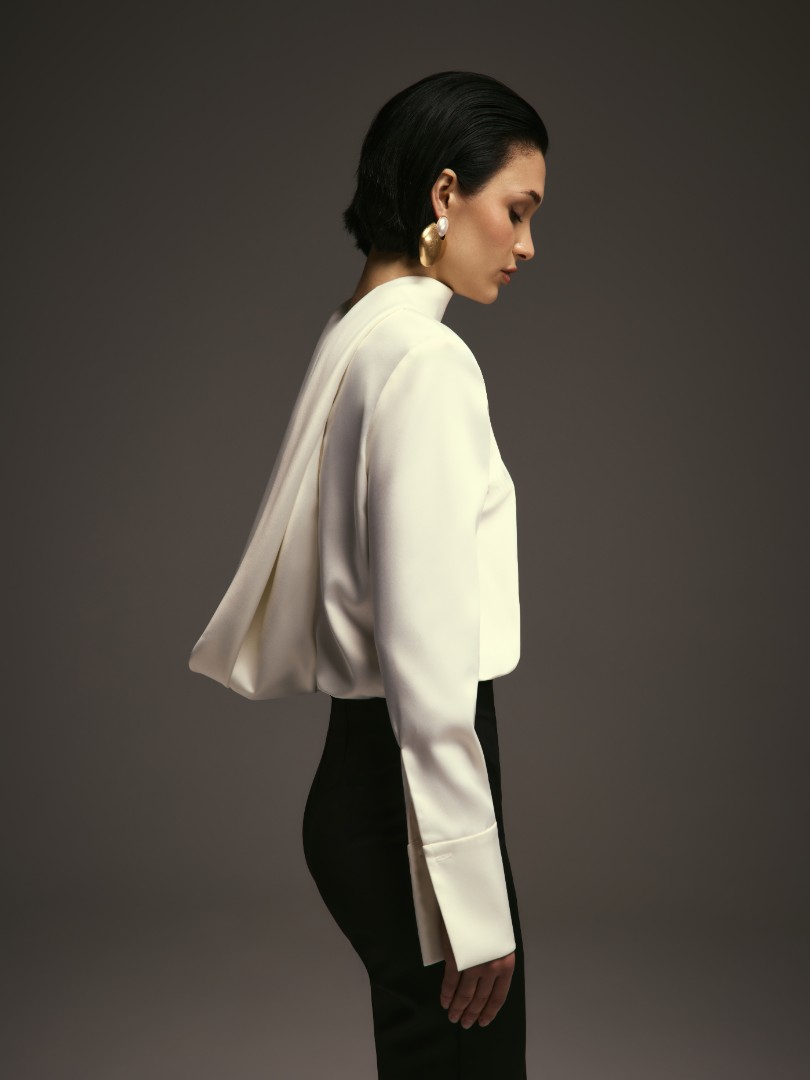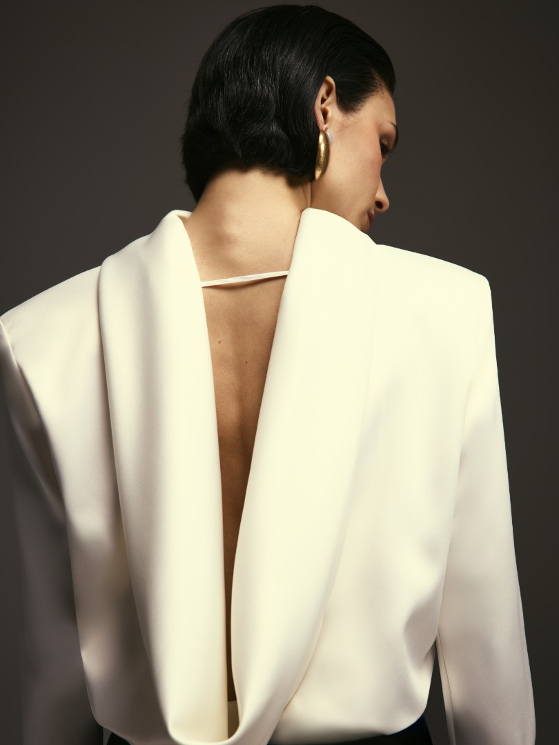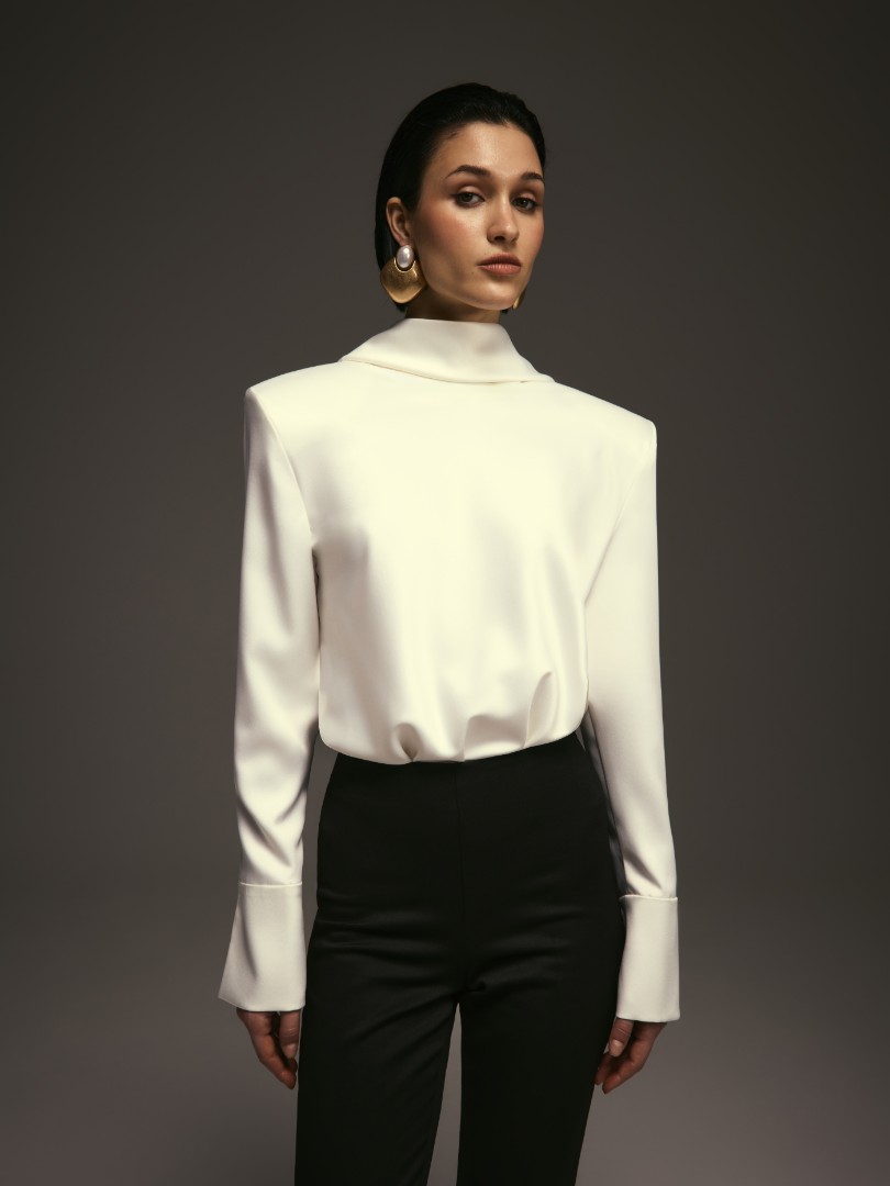 Боди с сигнатурной для коллаборации деталью – качелью на спине – является символом баланса между праздником и спокойствием. Боди отлично впишется в женственный гардероб, а также составит законченный сет с брюками AV. MONTAIGNE из коллаборации брендов.