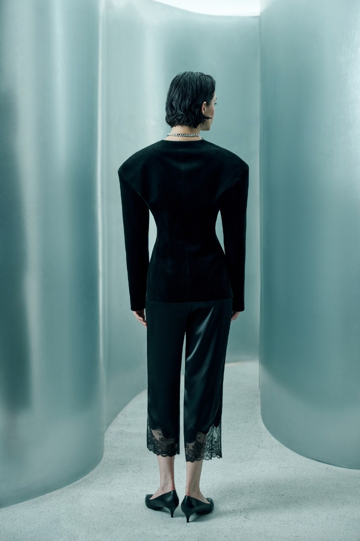 Укороченные брюки в бельевом стиле с кружевной вставкой. Сдержанная вариация изделия из кружева, подходящая для всевозможных образов, снижая уровень откровенности и добавляя ощущение внутреннего и внешнего комфорта.
