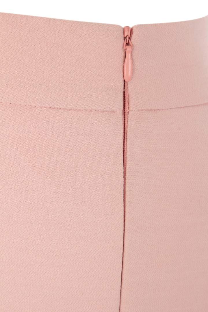 Брюки клеш со стрелками из костюмной ткани. Полная длина, посадка на талии и потайная застежка-молния.