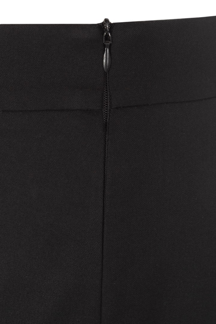 Брюки клеш со стрелками из облегченной костюмной ткани с добавлением вискозы. Полная длина, посадка на талии и потайная застежка-молния сбоку.