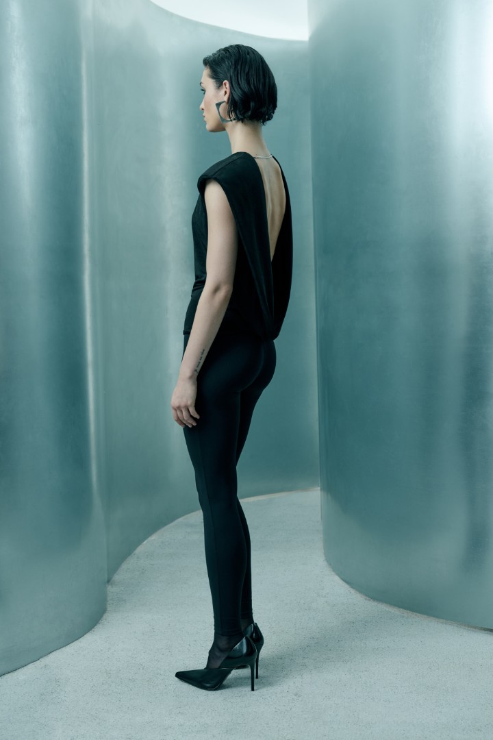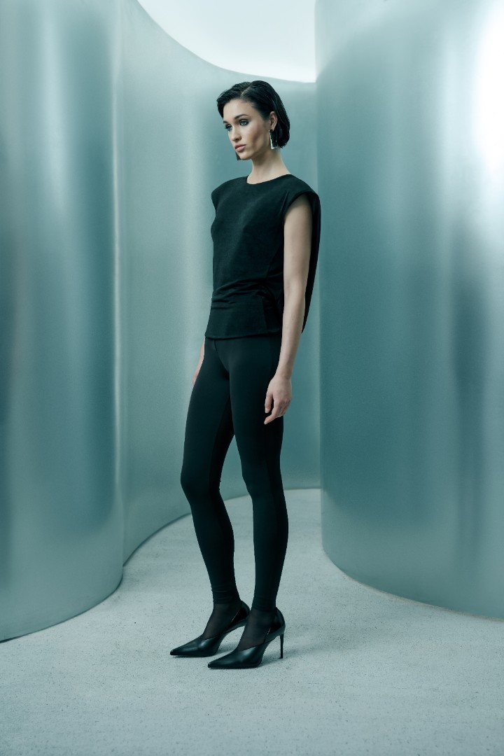 Базовые брюки-леггинсы в черном цвете – идеальная основа для образа с акцентной деталью, где требуется спокойное и комфортное дополнение. Модель отлично подойдет для многослойных образов с жакетами, топами и юбками из новогодней коллекции бренда.