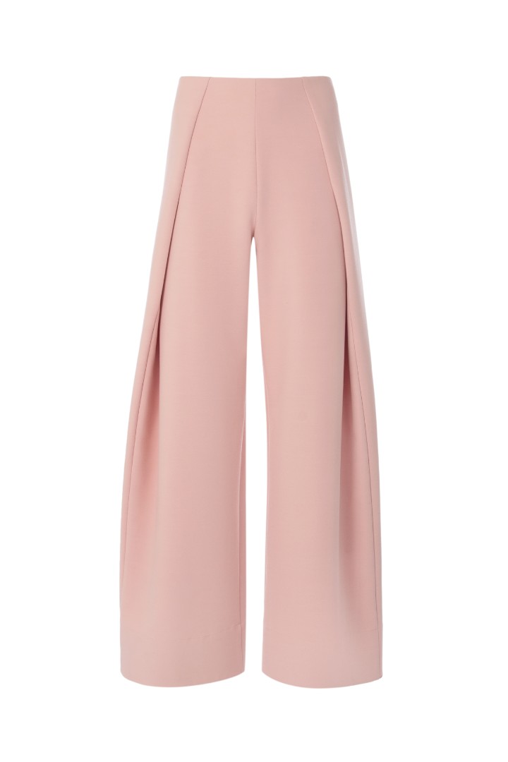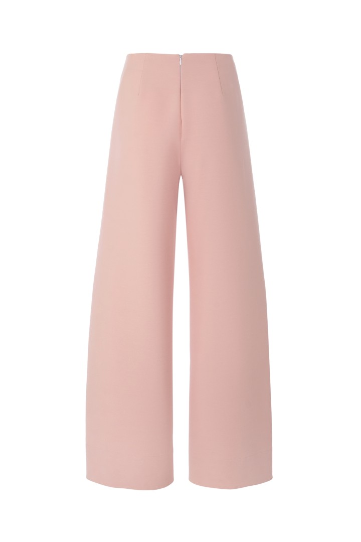 Костюмные брюки с высокой посадкой. Защипы в области талии образуют широкие складки по всей длине, а плотная ткань хорошо держит форму. Застежка на потайную молнию сзади.