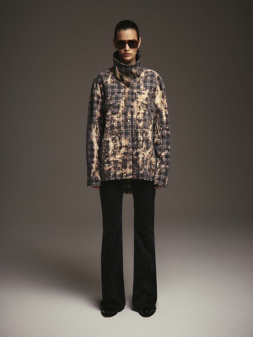 Джинсы boot cut со средней посадкой, расклешенные от колена. Эластан в составе ткани обеспечивает комфортную посадку по фигуре. Модель декорирована вертикальной вставкой по боковому шву и необработанным нижним краем.