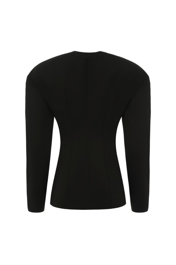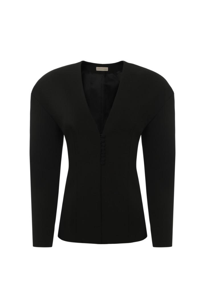 Жакет приталенного кроя с объемной плечевой линией и подплечниками, V-образным вырезом и рельефными швами. Дополните жакет брюками ST. HONORE из той же ткани – такой костюм станет отличным вариантом строгого, но в то же время женственного образа. Особенности и утонченности изделию добавляет застежка с помощью навесных петель и пуговиц.