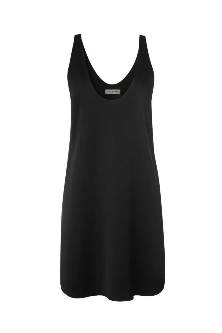 Платье-майка в бельевом стиле с U-образным вырезом и широкими бретелями. Для пошива модели использовался струящийся вискозный шелк, который позволяет телу дышать, сохраняя ощущение комфорта даже в зной.