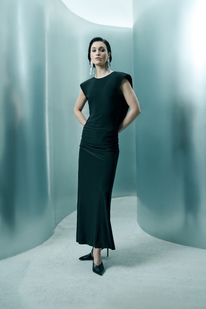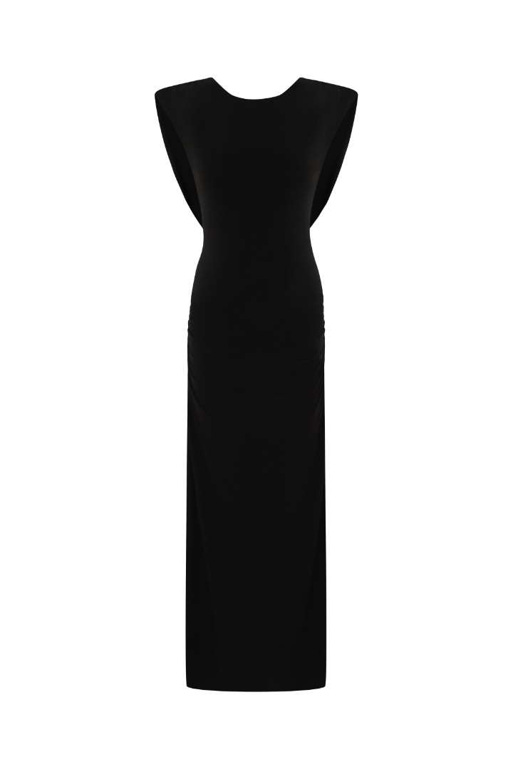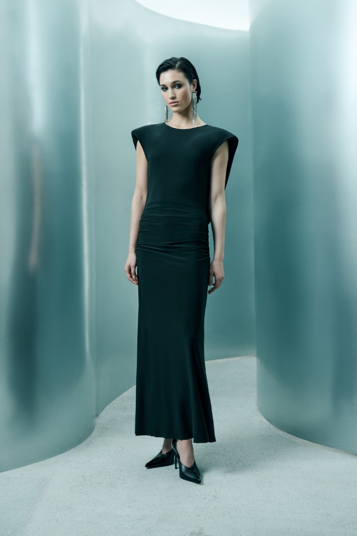 Платье макси из деликатной струящейся ткани, делающей такой вариант платья подходящим для спокойного тихого вечера, не требующего лишней суеты, и пропитанного вниманием к настоящему моменту и деталям.