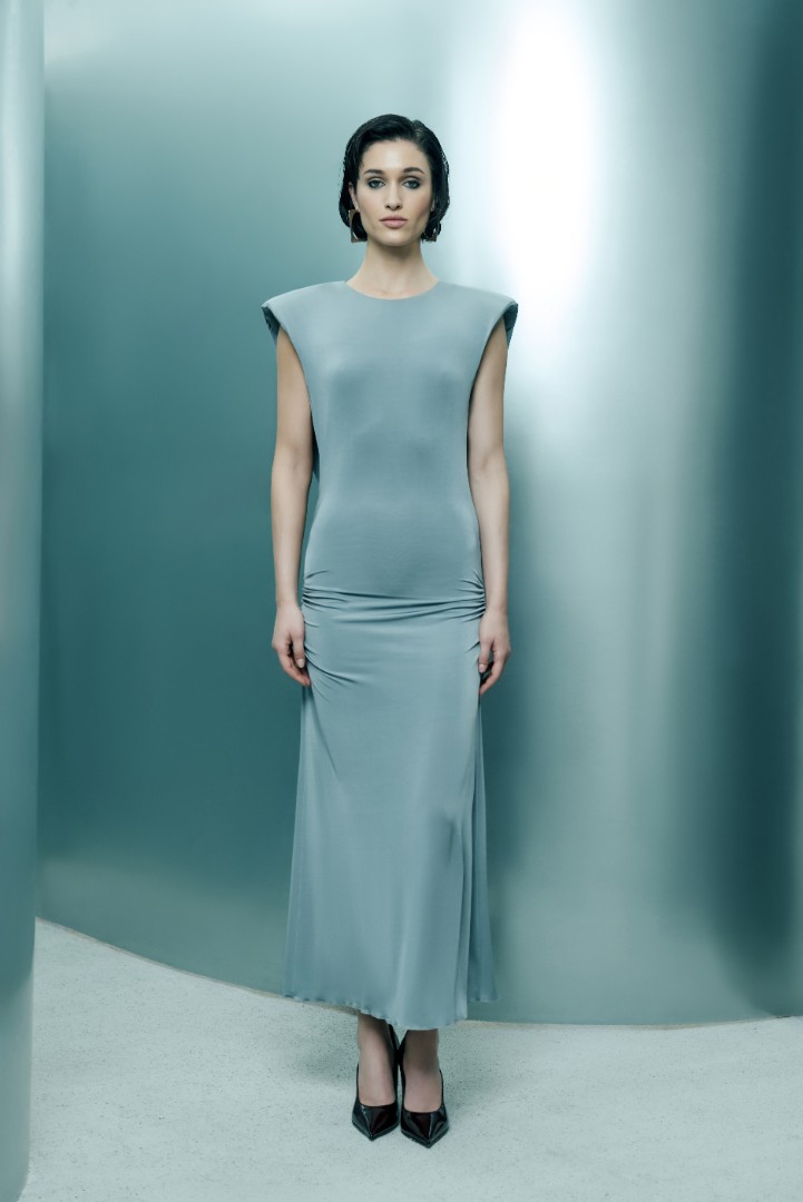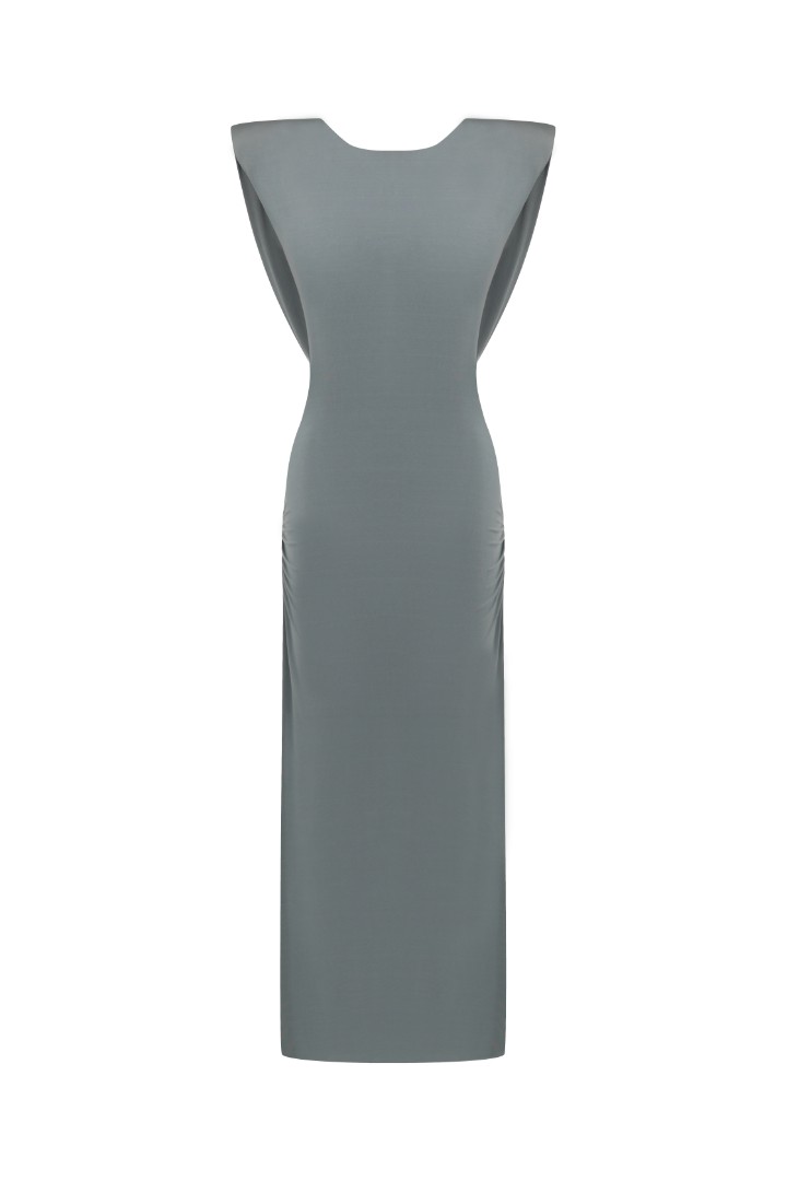 Платье макси из деликатной струящейся ткани, делающей такой вариант платья подходящим для спокойного тихого вечера, не требующего лишней суеты, и пропитанного вниманием к настоящему моменту и деталям.