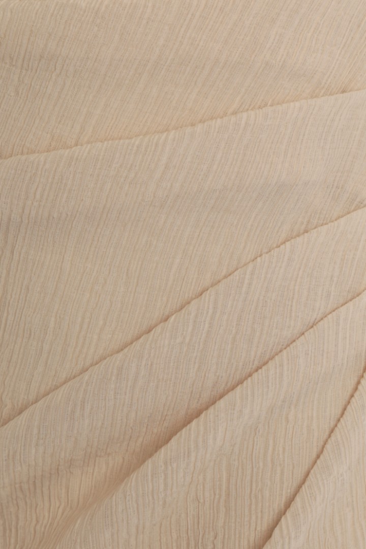 Асимметричное мини-платье с драпировками из фактурной ткани. Потайная застежка на молнию сбоку.