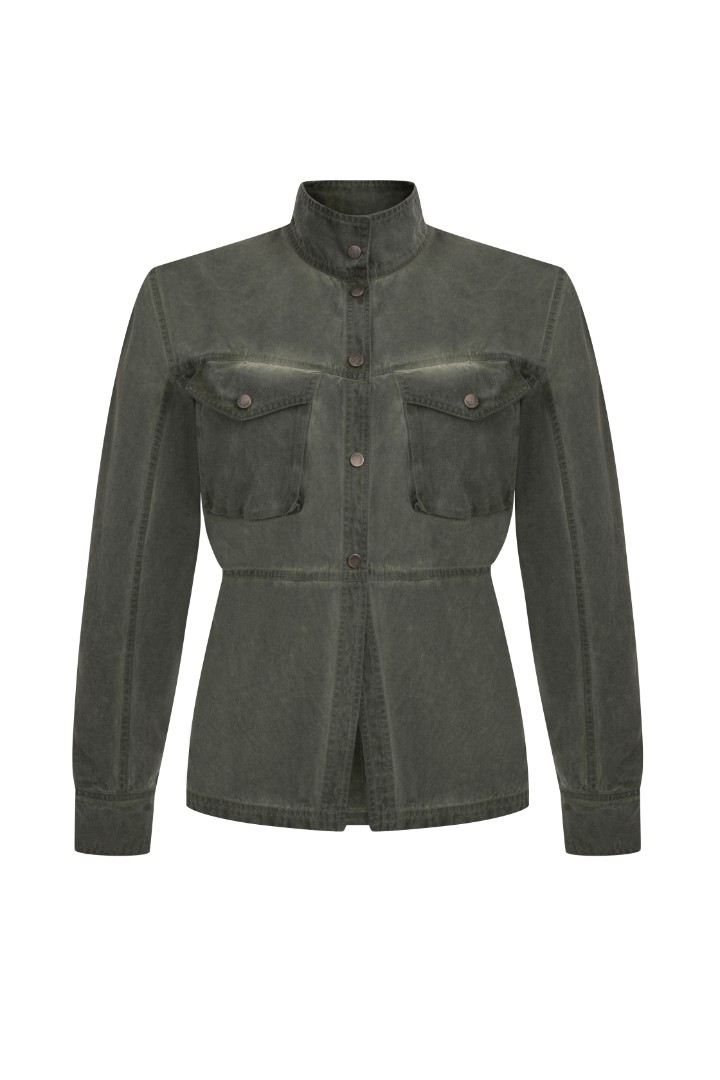 Рубашка из вареного хлопка с рукавами о-силуэта. Модель приталенного кроя с нагрудными карманами и декоративными швами. Застежка на кнопки.