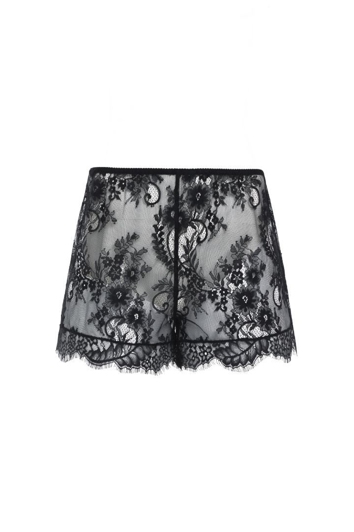 Гипюровые шорты с мягкой посадкой и изящным кружевным рисунком, подчеркивающие естественные линии тела и не сковывающие движение. Прозрачность материала добавляет образу откровенности, сохраняя при этом ощущение расслабленности.