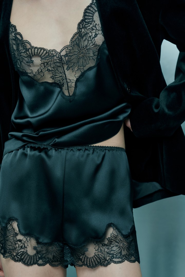 Топ в бельевом стиле на тонких бретелях с кружевной вставкой. Сочетайте с шортами AMBROSE для создания провокационного образа, и завершите его сдержанным жакетом из бархата.
