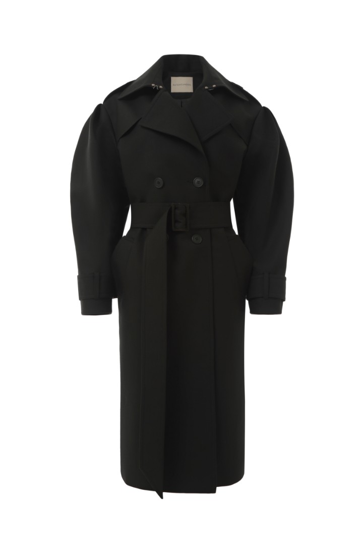 Двубортный тренч о-силуэта из плотной ткани с водоотталкивающей пропиткой. Ткань изделия хорошо держит форму и отличается своей долговечностью. В комплекте длинный пояс.