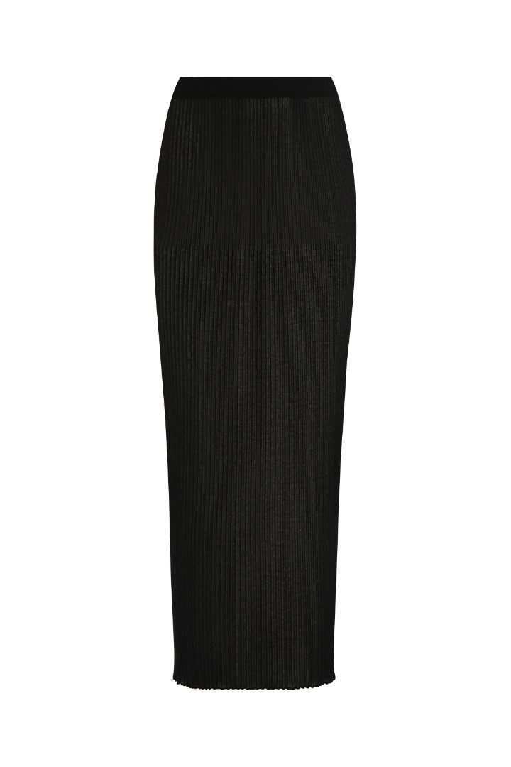 Полупрозрачная юбка из трикотажа в рубчик. Модель прямого силуэта с эластичной резинкой на поясе.